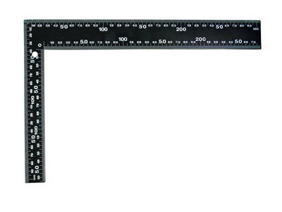 Úhelník HOBBY, černý, 300x200mm, stupnice na vnější i vnitřní straně, pružinová ocel