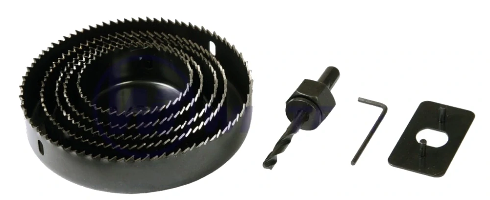 Vykružovací pil, sada 8ks, průměr: 76, 89, 102, 127 mm + inbus + hlavička.